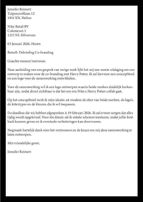 Tijdens dit project moeten wij een logo, een paar ontwerpen en een flyer maken voor een kledingmerk die een samenwerking aangaat met een franchise. Je mag zelf een kledingmerk of een franchise kiezen. Kies je zelf een kledingmerk, dan wordt een franchise voor je gekozen of kies je een franchise, dan wordt een kledingmerk voor je gekozen. Ik heb zelf de franchise gekozen en hebt Nike als merk gegeven door de docent.
