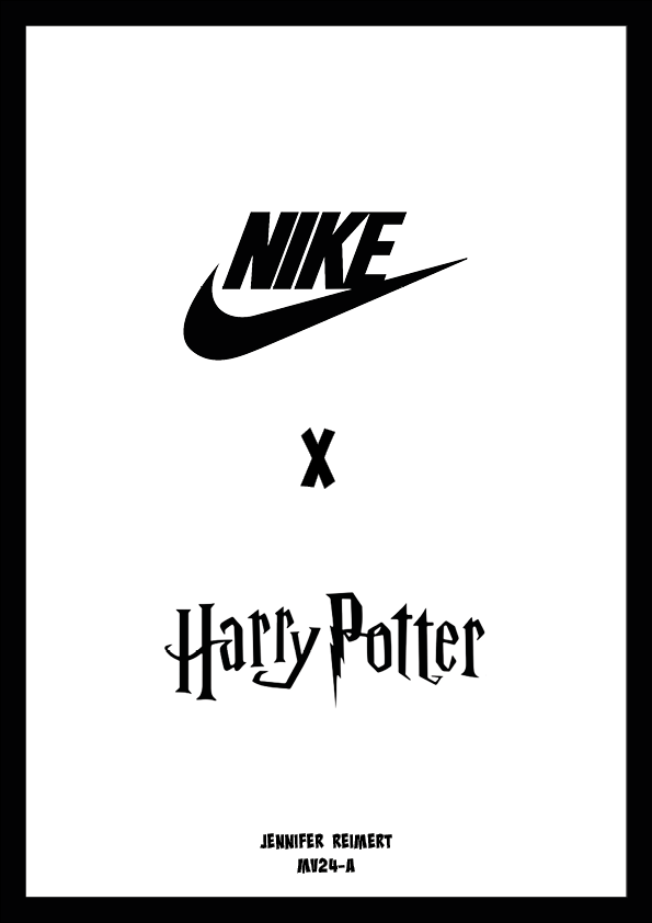 Dit was onze ene laatste project, het was best leuk om te doen. Ik weet veel van Harry Potter, dus het was best makkelijk om het uit te vinden welke de bekendste sybolen zijn en die met de Nike logo te verwerken. Dus ik heb de Nike logo als een swoosh van de Golden Snitch.