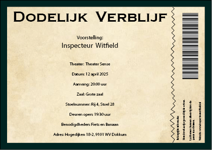 Bij deze mini project moeten we een logo, poster en entreekaart maken voor een theater voorstelling die “Inspecteur Witfield” heet.